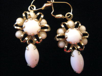 VINTAGE MILK GLASS EARRINGS. RIVETED STONES. PIERCED.