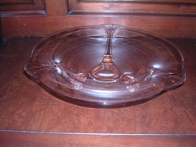 Pink Depression Glass Large Footed Glass Serving Bowl / Dish 12"