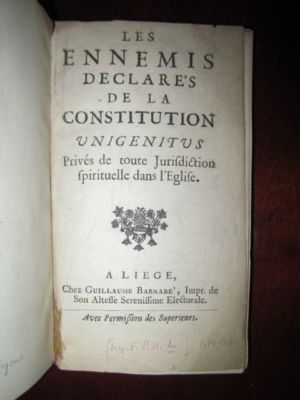 Title (ebay affiliate link): LES ENNEMIS DECLARE'S DE LA CONSTITUTION UNIGENITUS, 1721 *Very Rare!*