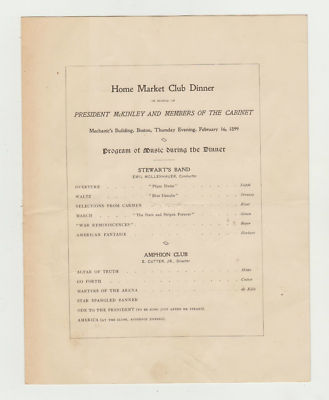 1899 Home Market Dinner Club President McKinley Cabinet Program Music Lyrics MA