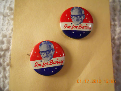 TWO BARRY GOLDWATER PIN BACK BUTTONS