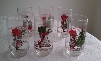 Title (ebay affiliate link): Set of 6 Limited Edition Holly Hobbie Coca Cola Christmas Glasses