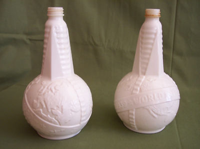 Pair of 1939 New York World's Fair Milk Glass Bottles