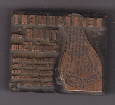 COCA-COLA PRINTING BLOCK REFRESHMENT TIME WITH SINGIN SAM 1925 ??