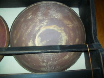 PRIMITIVE OLD VINTAGE WOOD WOODEN DOUGH BUTTER BOWL BROWN PAINT ONE RIM