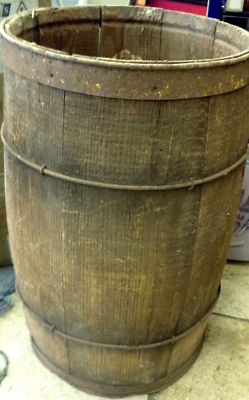 ANTIQUE NAIL BARREL NAIL KEG PRIMITIVE WIRE BANDED 10 x 17