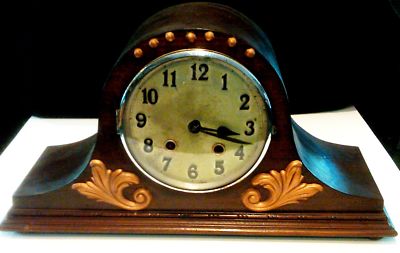 ANTIQUE TAMBOUR STYLE GERMAN MANTEL CLOCK