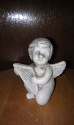 Title (ebay affiliate link): Gray Ceramic Cherub Angel Holding Harp Figurine Status Collectable Knickknack