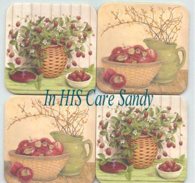 Title (ebay affiliate link): free shipping Longaberger Strawberry Basket Apples Pottery Coasters New