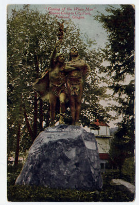 Title (ebay affiliate link): Old Postcard Coming of the White Man Bronze City Park Portland Oregon Ore 1912