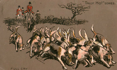 Title (ebay affiliate link): POSTCARD RAPHAEL TUCK TALLY HO SERIES HUNTING HORSES DOGS HOUNDS FOX