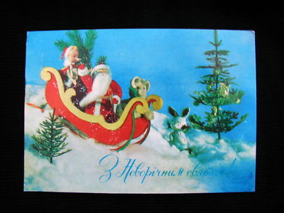 Title (ebay affiliate link): Vintage USSR Ukrainian original postcard 1971 Happy New Year Santa