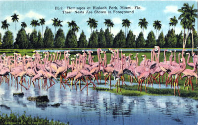 Title (ebay affiliate link): Vintage 1938 Linen - Flamingos at Hialeah Park, Miami, Florida