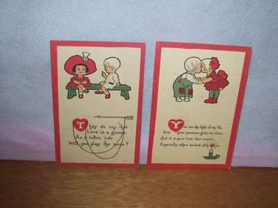 Title (ebay affiliate link): (2) CHILDREN VALENTINE GREETINGS "BOY ON BENCH W/GIRL & BOY & GIRL KISSING" LOOK
