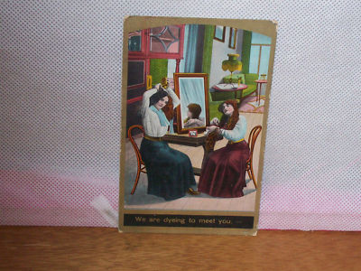 Title (ebay affiliate link): 1910 "TWO LADIES DYEING & COMBING THEIR LONG CURLY HAIR BY A MIRROR!" LOOK!!!!!!