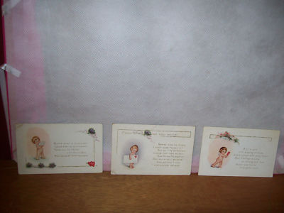 (3) WHITNEY "MIXED LOT-THREE NAKED CUPIDS WITH GIFTS & HOLDING VALENTINE HEART!"