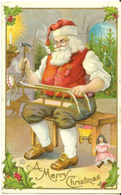 Title (ebay affiliate link): Vintage Christmas pc Santa building a toy sled in workshop / Holm Lincoln MN