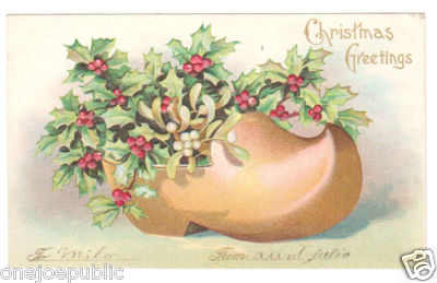Title (ebay affiliate link): 1907 - 1914 Rare Vintage Postcard Christmas Greetings Mistletoe, Holy Dutch shoe