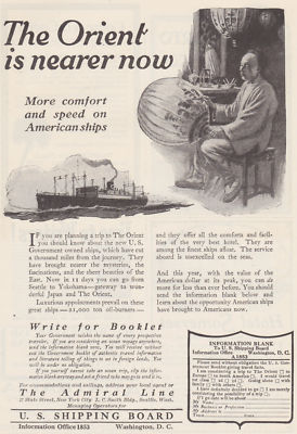 The ADMIRAL Line 1920 Print AD "The Orient is Nearer Now" U.S. Shipping Board