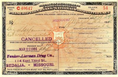 Antique 1924 Missouri PROHIBITION ALCOHOL Crandall PRESCRIPTION Pharmacy Bar Pub