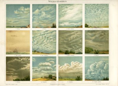 1894 CLOUDS FORMS Antique Chromolithograph Print