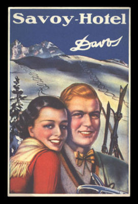 Savoy Hotel DAVOS - Swiss vintage luggage label