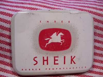 Title (ebay affiliate link): Condom Tin-Prophylactic-Three Sheik-Julius Schmidt,Inc.-New York-full-NR