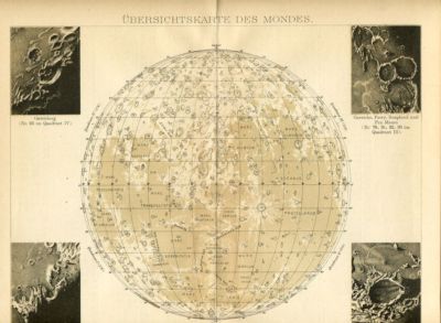 1895 The MOON ASTRONOMY Antique Lithograph Map