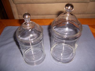 Title (ebay affiliate link): APOTHECARY CANDY JARS Vintage with Lids 8 & 9 Inches