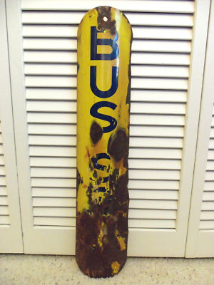 VINTAGE ORIGINAL PORCELAIN POLE BUS STOP STREET SIGN