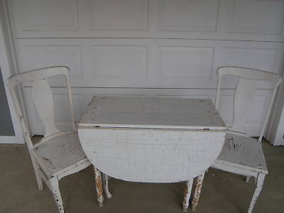 ANTIQUE DROP LEAF TABLE AND TWO CHAIRS