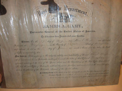 Title (ebay affiliate link): Rare Postmaster General James A. Gary Postmaster Appointment Mayberry Maryland