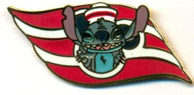 Title (ebay affiliate link): 2008 STITCH WEARING A DISNEY CRUISE LINE SAILOR HAT POPS OUT OF WAVE LOGO PIN