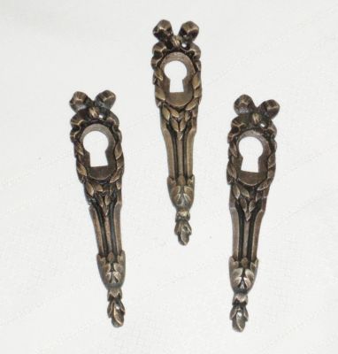 Title (ebay affiliate link): Lot 3 ANTIQUE Victorian KEYHOLE Covers ESCUTCHEONS Furniture Cabinet Hardware LT