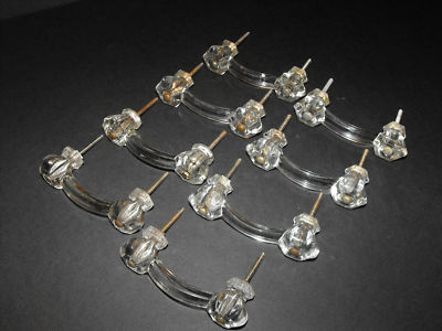 Set Vintage Antique Depression Glass Clear Drawer Knob Pull Handles Furniture