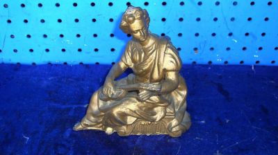 VINTAGE FIGURAL CLOCK TOP WHITE METAL STATUE WOMAN PLAYING A MANDOLIN