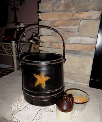 PRIMITIVE BLACK /STAR PANTRY BUCKET FIRKIN ?