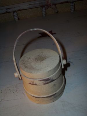 Title (ebay affiliate link): PRIMITIVE WOOD BUTTERMILK FIRKIN/PANTRY/SUGAR BUCKET FOLK ART
