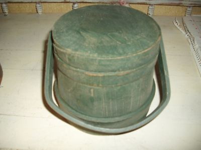 Title (ebay affiliate link): ANTIQUE PRIMITIVE WOOD HUNTER GREEN FIRKIN/PANTRY/SUGAR BUCKET AAFA