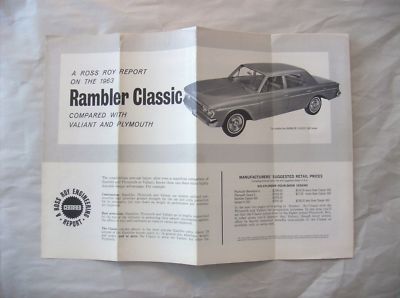 Title (ebay affiliate link): 1963 RAMBLER CLASSIC - ROSS ROY ENGINEERING REPORT CAR AD BROCHURE