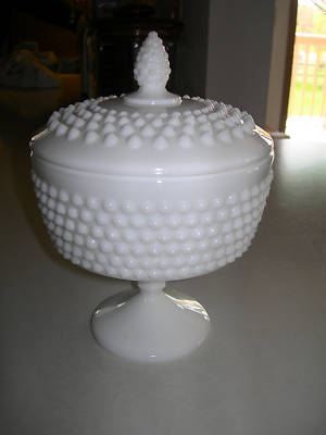 Vintage Fenton White Milk Glass Hobnail Candy Dish