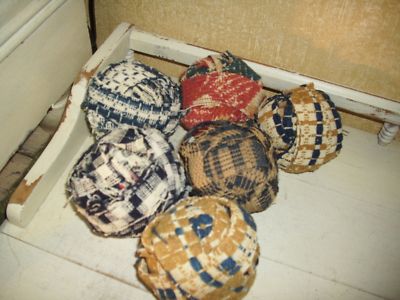 ANTIQUE HOMESPUN WOOL COVERLET RAGBALLS AAFA
