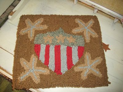 Title (ebay affiliate link): PRIMITIVE FOLK ART HOOKED RUG/ SHIELD MAT /PATRIOTIC
