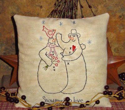 ~SNOW MUCH IN LOVE SNOWMEN~ ~ Primitive Stitchery Sampler Pillow