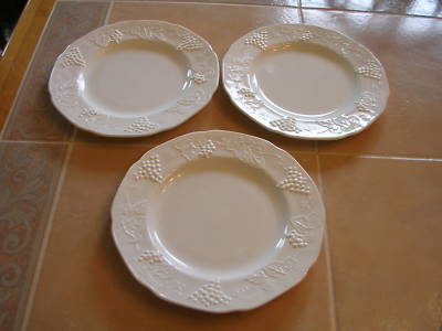 SET OF 3 INDIANA ? MILK GLASS GRAPE LEAF DINNER PLATE