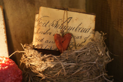 Primitive early heart valentine day SET OF 6 ornies *primsbykim3037*