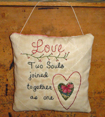 ~LOVE...TWO SOULS JOINED~ Primitive Stitchery Sampler Cupboard Pillow