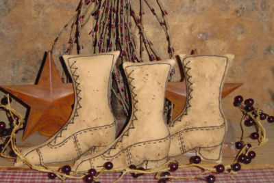 Title (ebay affiliate link): ~VICTORIAN BOOTS~ Primitive Stitchery Sampler Ornies/Pillows