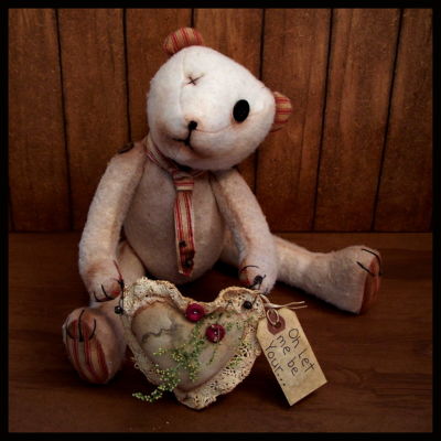 Title (ebay affiliate link): Primitive Bear Doll Sitter Valentine Red Ticking Deco Handmade