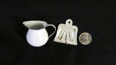 Title (ebay affiliate link): Antique Miniature Child's Enamelware Pitcher Dust Pan Vtg Prim Doll House Toy